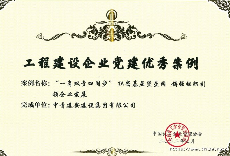 中青建安集團(tuán)榮獲“工程建設(shè)企業(yè)黨建優(yōu)秀案例”