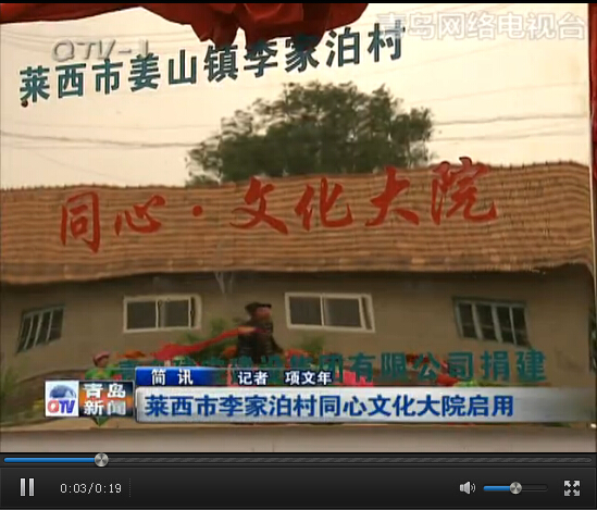 青島電視臺對建安集團捐建的萊西市姜山鎮(zhèn)李家泊村同心文化大院落成揭牌儀式進行報道