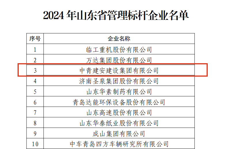 中青建安集團榮膺山東省管理標(biāo)桿企業(yè)